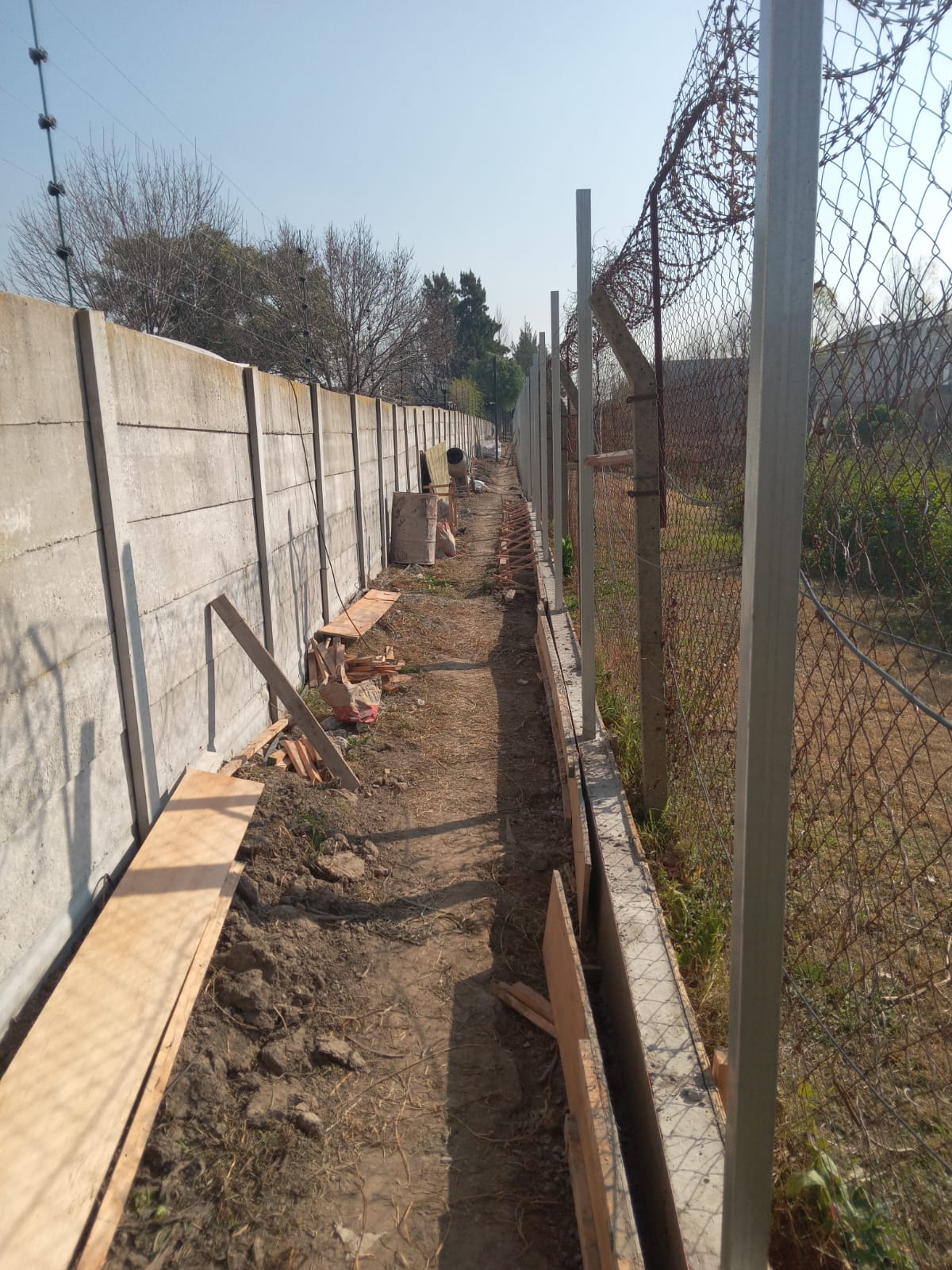 - Sistema ya instalado sobre el muro lindero con el Centro Comercial y desde la guardia de Marcos Paz hasta la calle Barbarita
